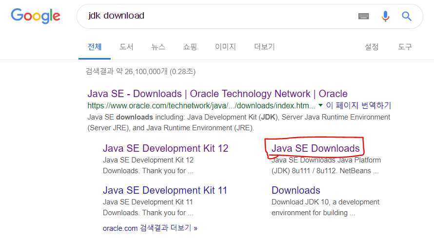 JDK 기본적으로 오라클에서 제공하기 때문에 Google에서 다음과 같이 검색을 하고 들어갑니다.