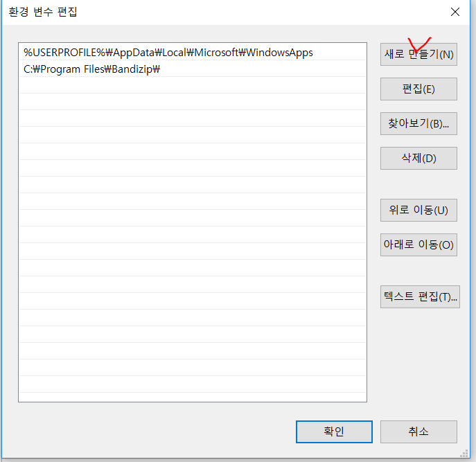 우리가 만든 시스템 변수의 경로를 새롭게 추가해주어야 한다.