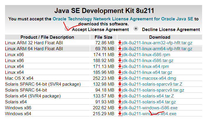 Java SE-Downloads | Oracle... 에 들어가서 조금 밑으로 내려서 빨간색 체크된 JDK를 눌러줍니다.